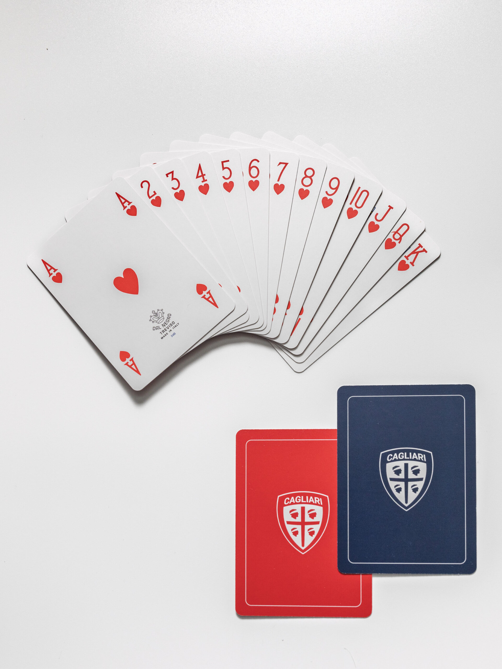 Le nuove carte Rossoblù con astuccio doppio di due mazzi di carte da ramino, in 100% pvc.
