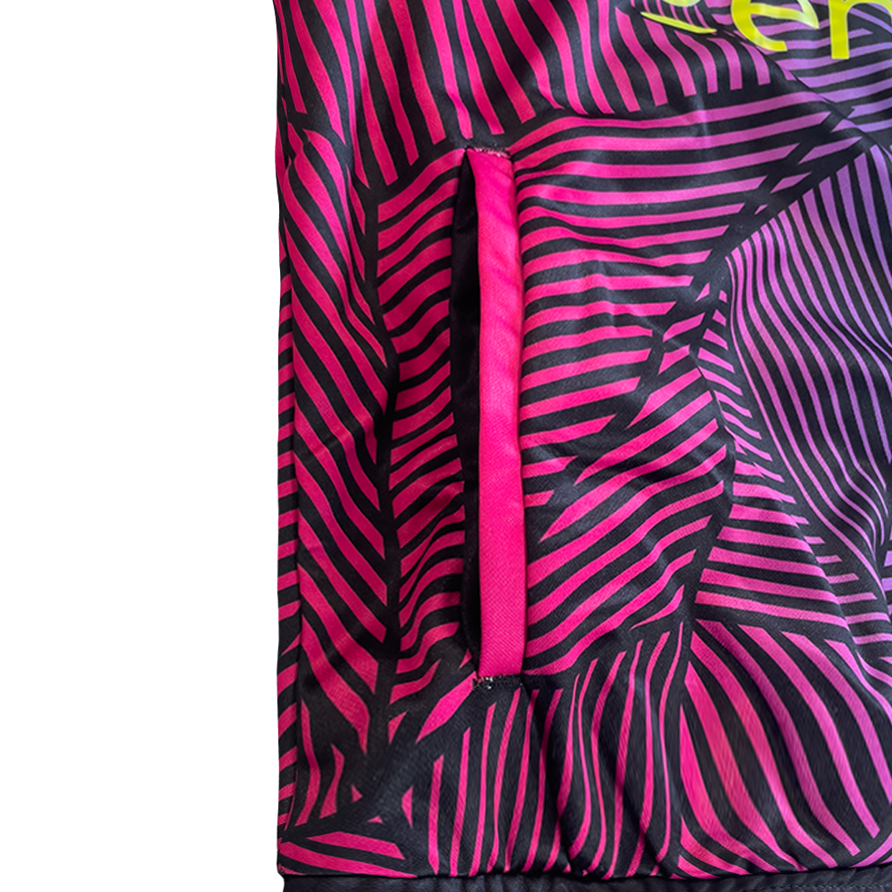 Unica nel design: combinazione perfetta del mix di colori nero, magenta e ciano, che le dona un look moderno e distintivo. Modello unisex in tessuto poliestere Interlock di origine riciclata e certificata Repreve.