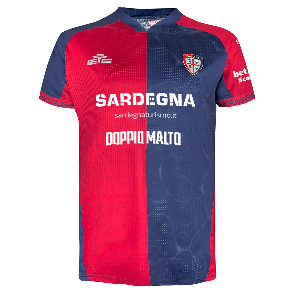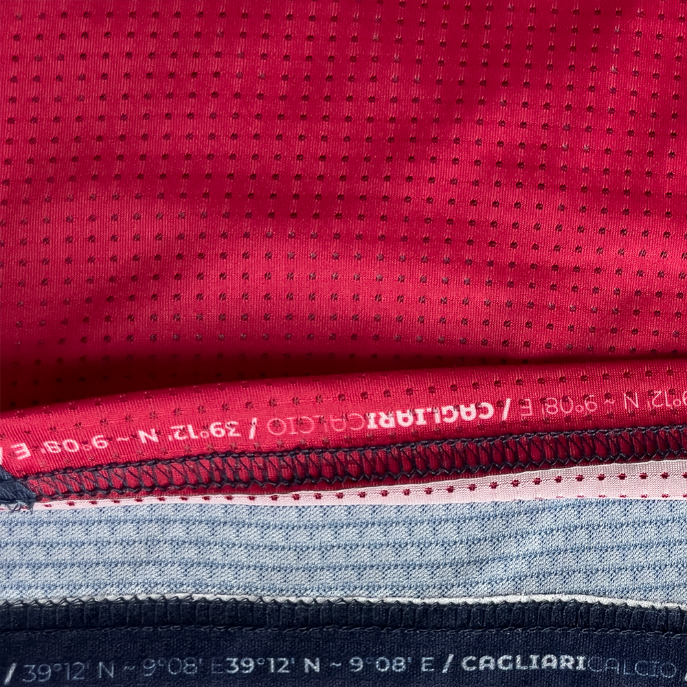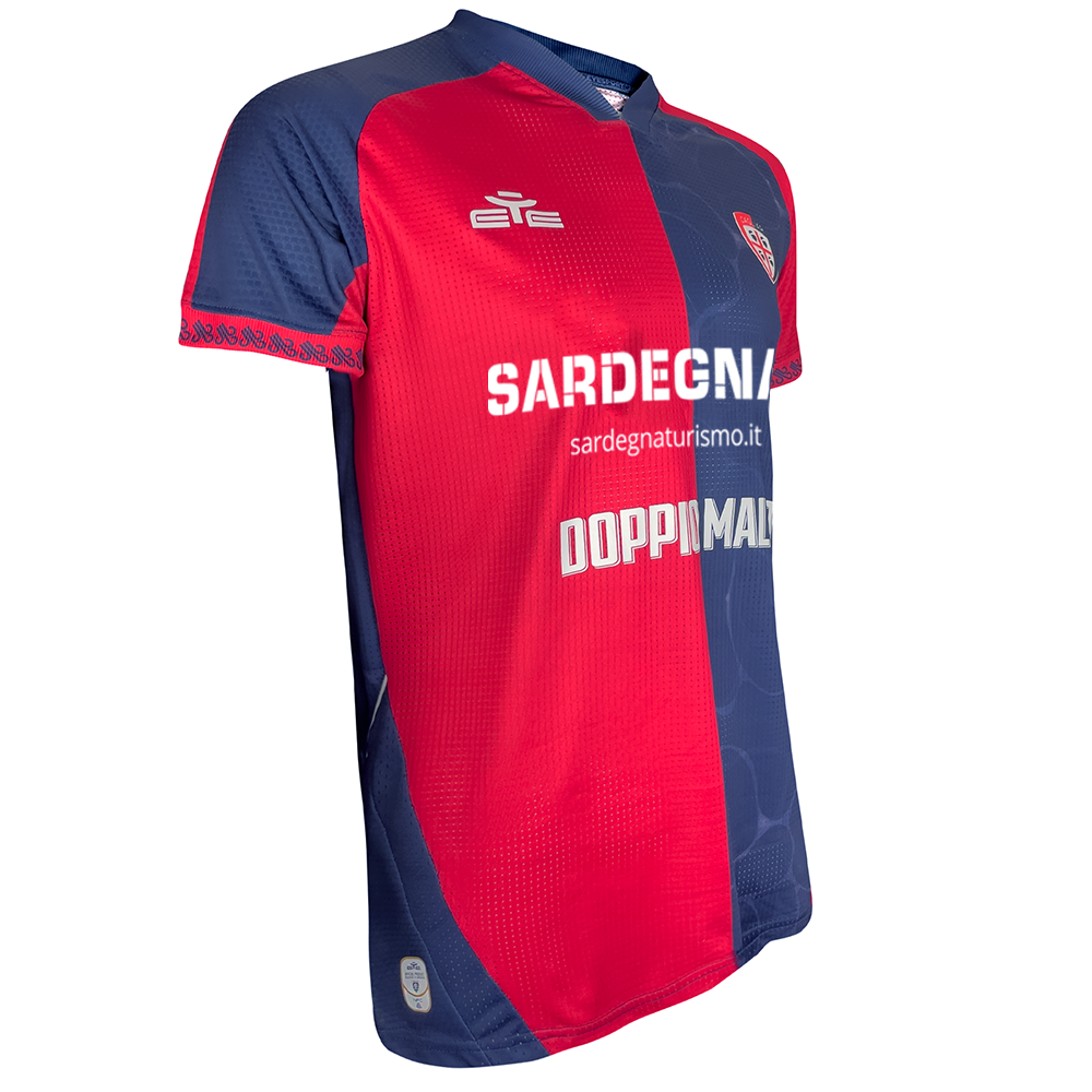 Il classico design a quarti rosso e blu è arricchito da una trama sublimata nel quarto blu, ispirata ai riflessi cangianti del mare sardo. Un flusso grafico che simboleggia il legame tra l’Isola e il mondo, portando con sé un’identità forte e senza confini.