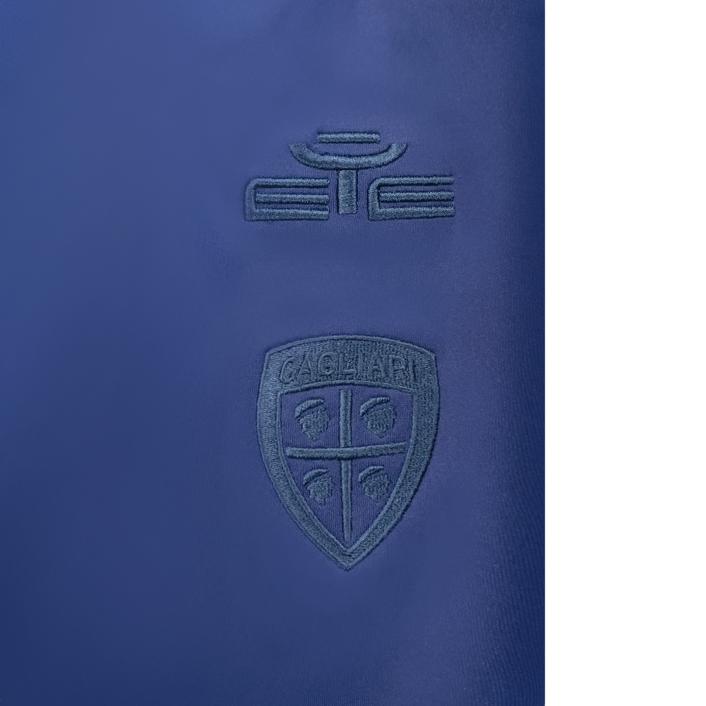Logo EYE Sport e scudetto del Cagliari Calcio ricamati tono su tono sul lato sinistro.